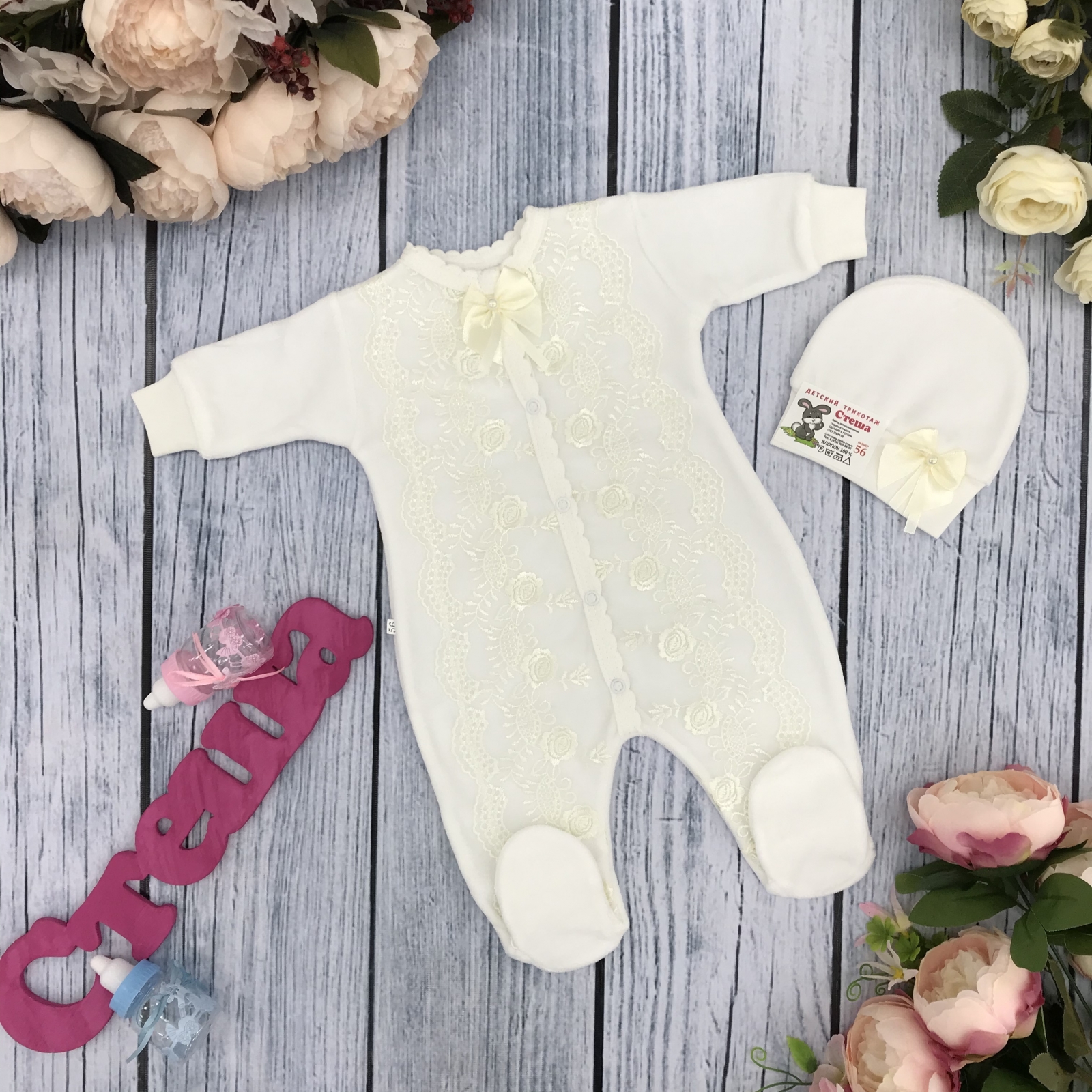 Теги: Купить оптом детский комбинезон из велюра. 264-М. Комбинезон с шапкой, хлопок 80% велюр 20% ПЭ, молочный цена,отзывы официальный сайт "Стеша Евпатория"