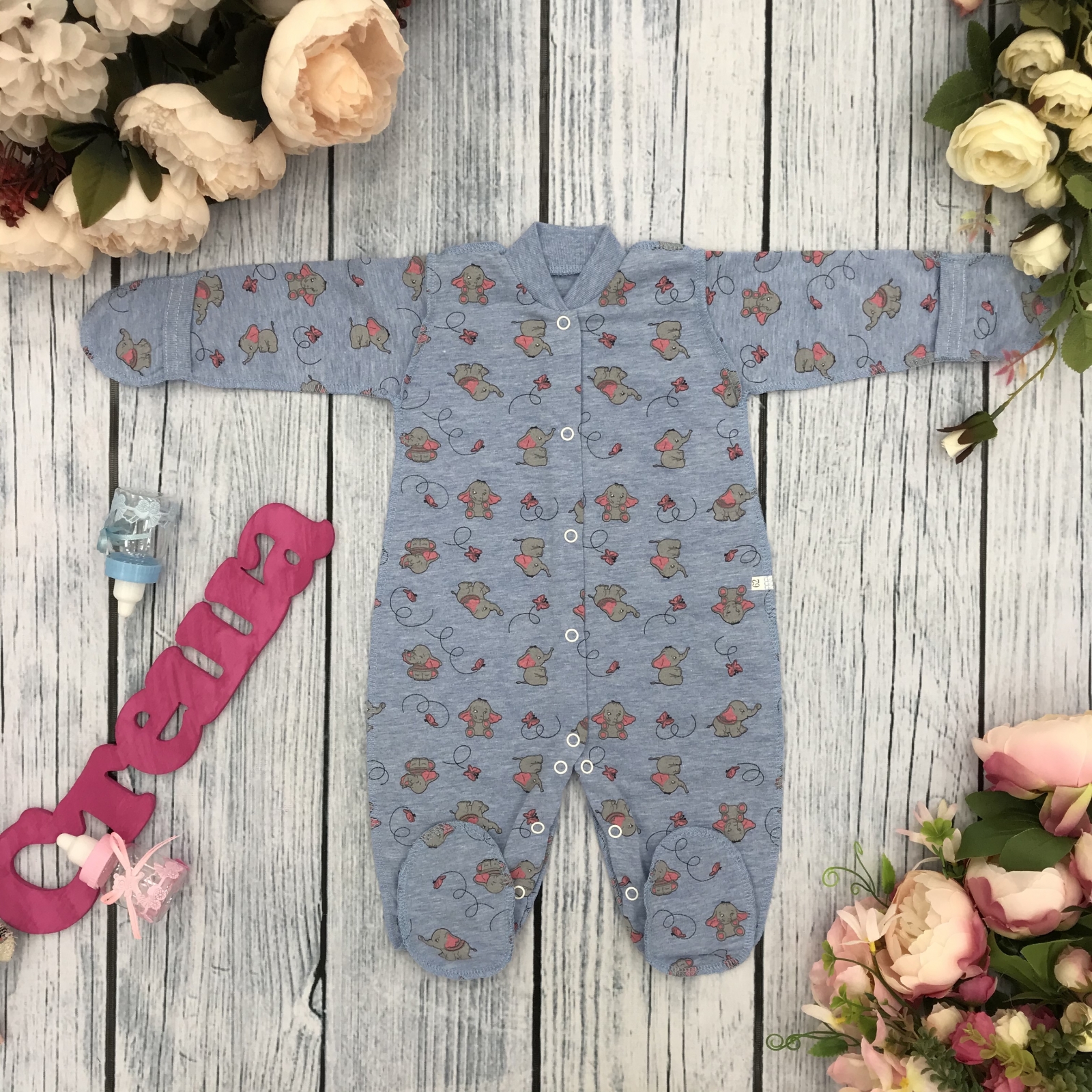 Теги: Купить оптом комбинезон с рисунком. 271-Г. Комбинезон, хлопок 100 % кулирка 56,62,68,74,80, голубой цена,отзывы официальный сайт "Стеша Евпатория"